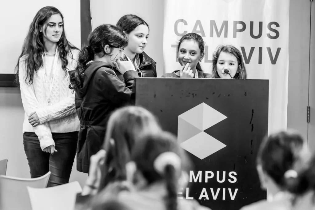 At the first meeting with the girls, I was amazed. I can’t tell what excited me more: Seeing twelve years old girls coding, or seeing them simulate a workshop in a foreign language, aimed for a room full of people!