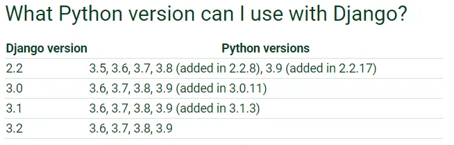 If you already have Python installed, there is a nice table that shows you which Django version matches your Python version.